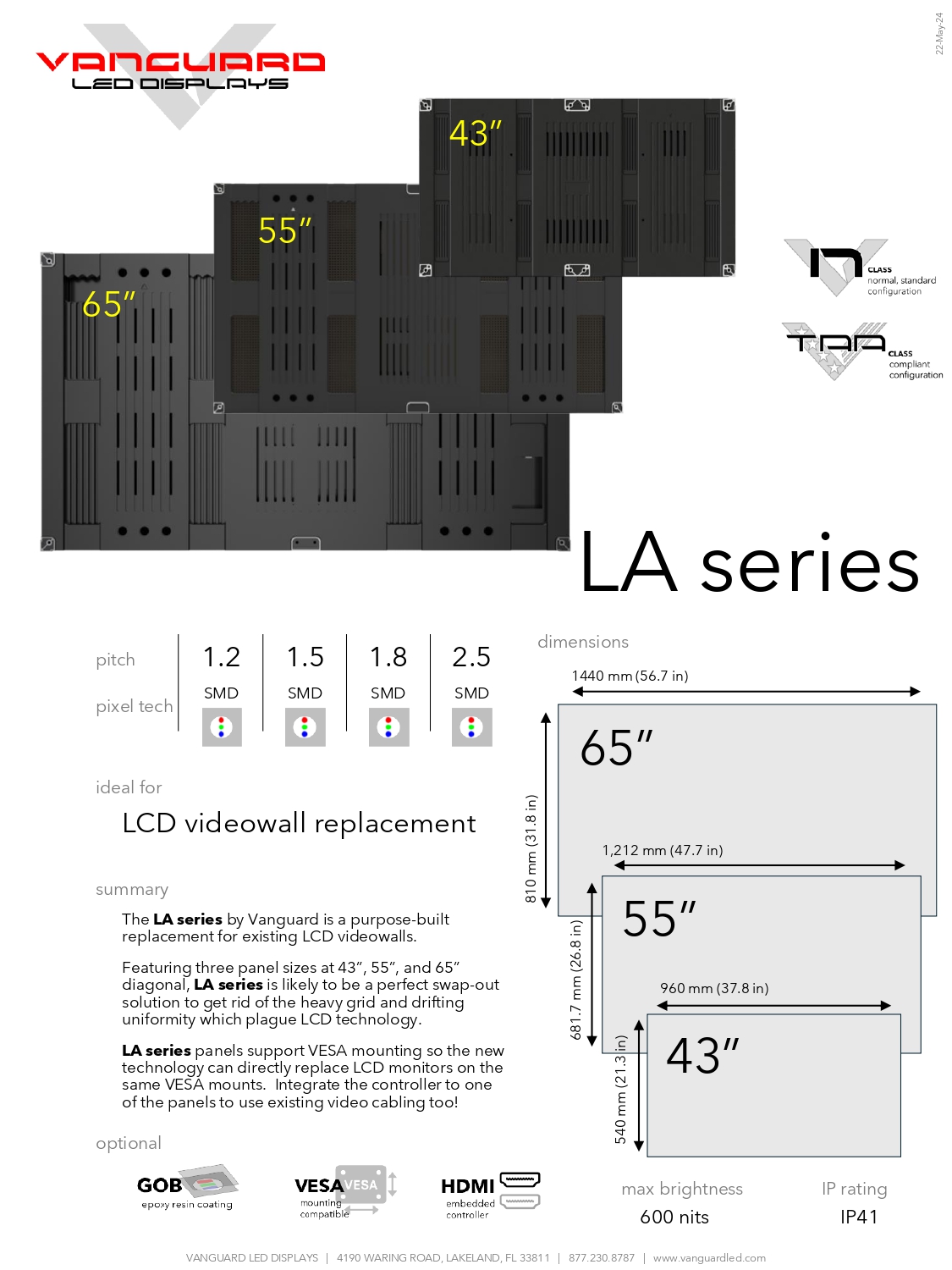 The LA series by Vanguard is a purpose-built replacement for existing LCD videowalls.