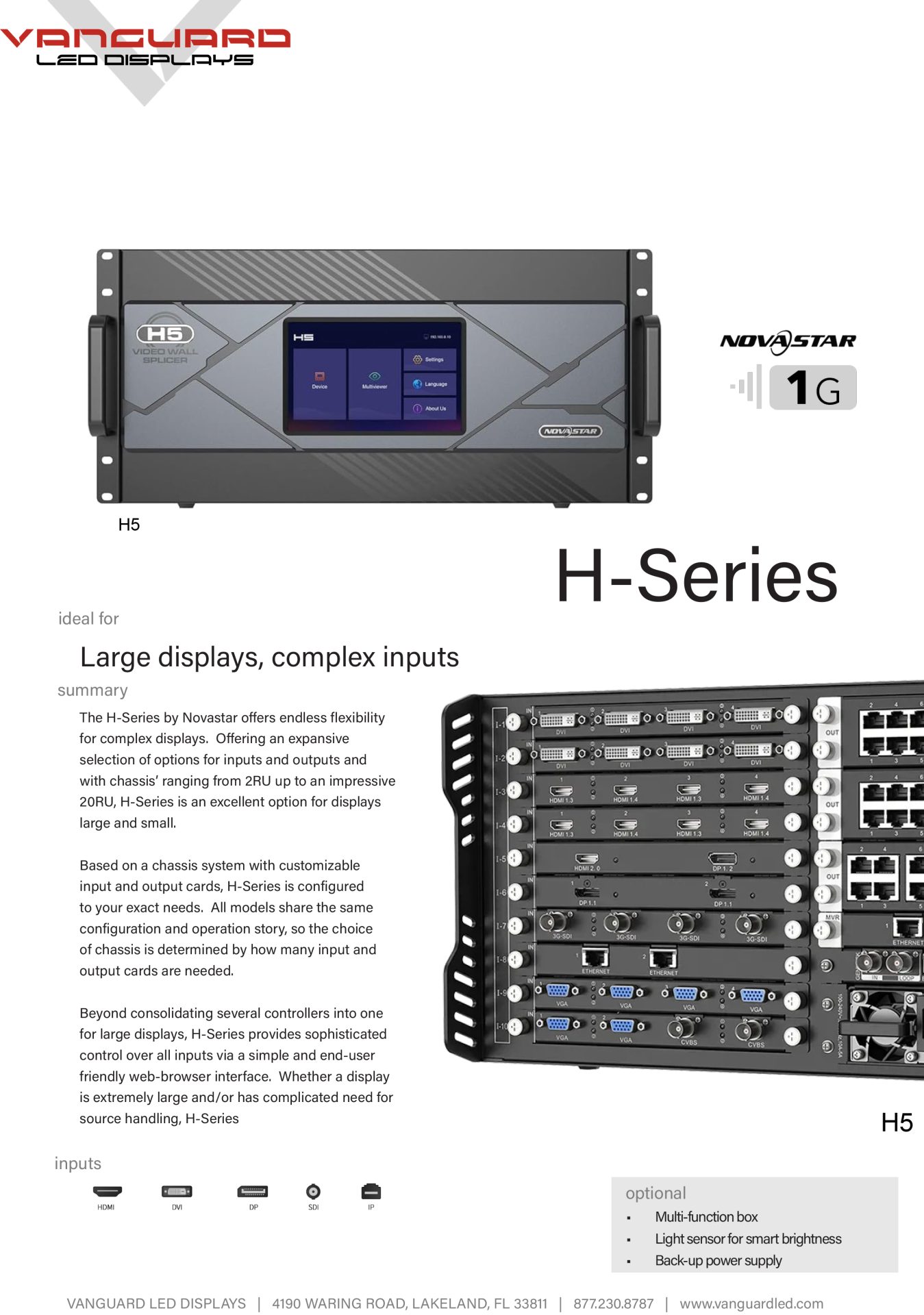 Beyond consolidating several controllers into one for large displays, H-Series provides sophisticated control over all inputs via a simple and end-user friendly webbrowser interface. Whether a display is extremely large and/or has complicated need for source handling, HSeries