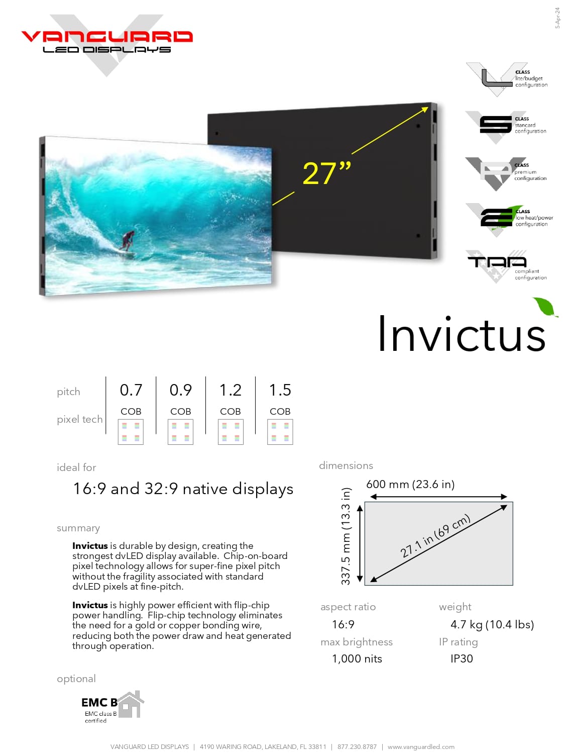 Invictus is highly power efficient with flip-chip power handling. Flip-chip technology eliminates the need for a gold or copper bonding wire, reducing both the power draw and heat generated through operation.