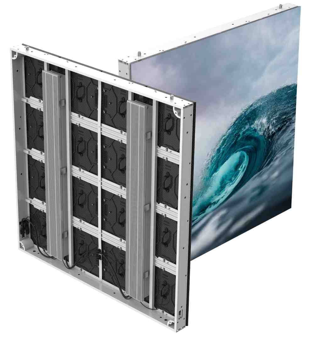 Each panel has a metal shield that flips out to protect the corner pixels when it is being moved or handled. This reduces the risk of damage, cuts down on repair costs, and helps the panels last longer during frequent rentals.