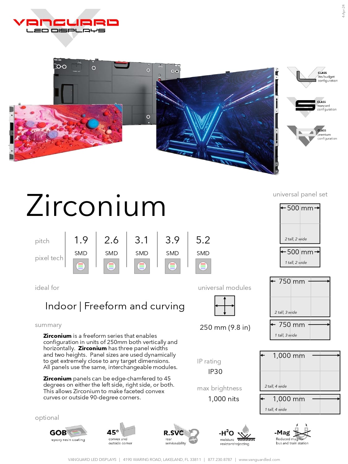 Vanguard’s Zirconium Series is the perfect combination of price point and resolution for today’s competitive DVLED market. A larger cabinet requires less overall parts and pieces needed to achieve a large visual environment. For wall mount applications, this cabinet can be fully front serviced which eliminates the need for costly rear accessible mounts. Available in P3.1 p3.G and P4.8 indoor pixel pitches. Zirconium allows for excellent visual solutions that meets the budget.